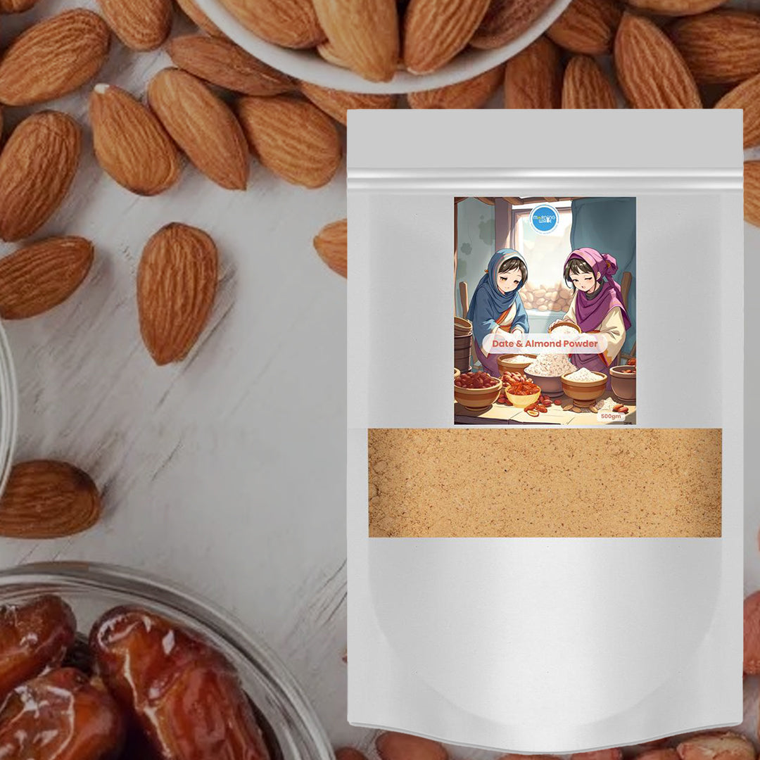 Our Date & Almond Powder is a nutrient-dense blend of premium dates and almonds, rich in calcium, iron, and healthy fats. It’s an excellent source of energy, brain nourishment, and immunity-boosting nutrients. Ideal for kids, pregnant women, and fitness enthusiasts, this natural sweetener can be added to milk, smoothies, or desserts.